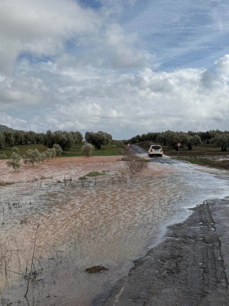 Hay árboles arrancados, sobre todos plantones jóvenes. Los cultivos se encuentran totalmente encharcados, comprometiendo su desarrollo. Mientras, numerosos caminos rurales están impracticables, con tramos completamente destrozados, desaparecidos o con grandes socavones. Esta situación está dejando explotaciones totalmente inaccesibles, dificultando el acceso a fincas y naves. El sector olivarero, en plena campaña de recolección, es uno de los más afectados. Muchos no han podido finalizar la recogida de la aceituna y, en algunas zonas de la provincia, queda entre un 20 y un 35 % de la cosecha pendiente, cuya recolección se pone en duda ante la imposibilidad de acceder a las explotaciones.