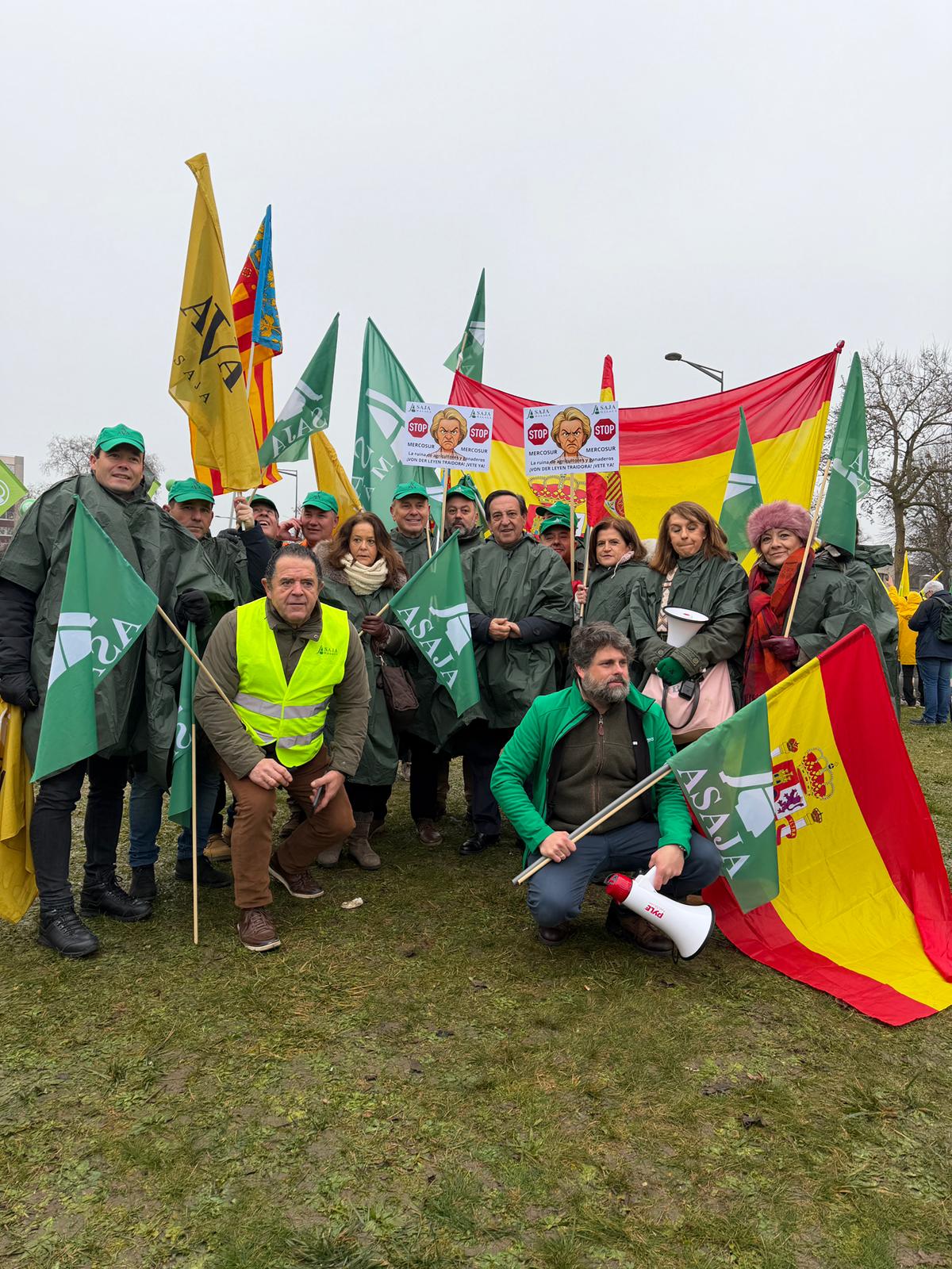 Entre los manifestantes se encontraban medio centenar de agricultores y ganaderos de ASAJA, procedentes de distintos puntos de España, que se han desplazado hasta Estrasburgo para trasladar un mensaje común: el campo europeo pide rigor jurídico, reciprocidad y garantías reales.