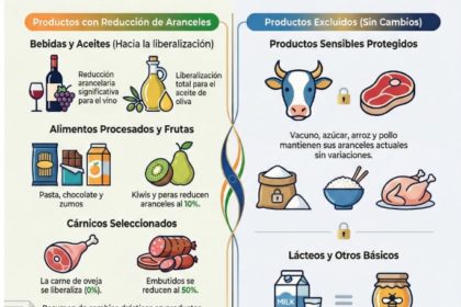 El acuerdo abre oportunidades para sectores concretos, como el vino y el aceite de oliva, que verán reducidos de forma significativa unos aranceles que hasta ahora superaban el 150 % en el caso del vino y el 45 % en el del aceite de oliva. ASAJA reconoce el interés de este acceso a un mercado de más de 1.400 millones de consumidores, especialmente para producciones de alto valor añadido.
