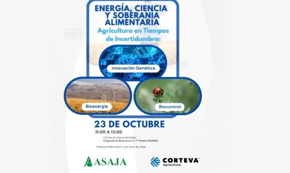 El próximo 23 de octubre, la sede nacional de ASAJA en Madrid acogerá la jornada “Agricultura en tiempos de incertidumbre: energía, ciencia y soberanía alimentaria”, organizada en colaboración con Corteva Agriscience.