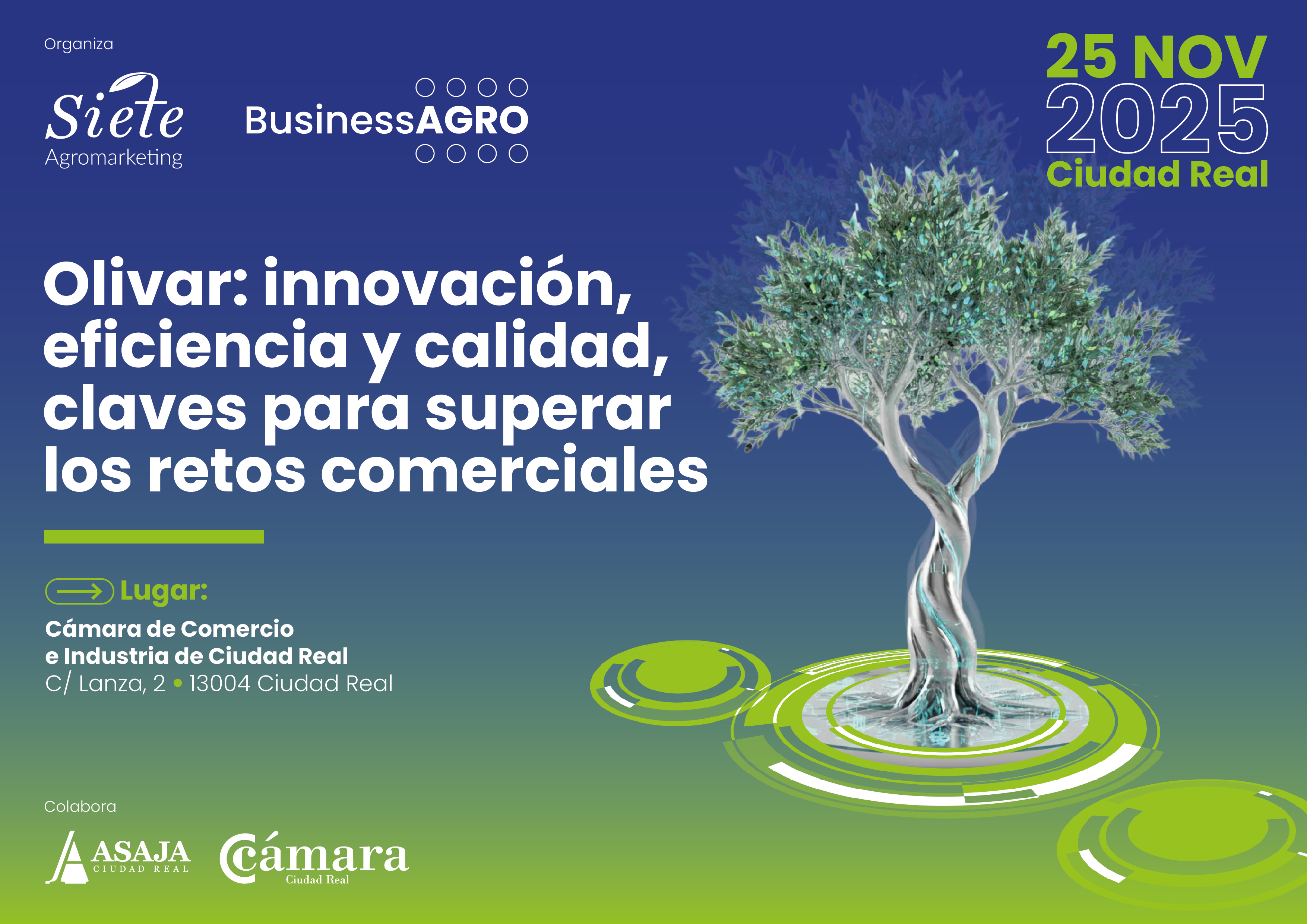 Ciudad Real es la sede elegida para la celebración de la VII Tertulia BusinessAGRO del Olivar, un evento impulsado por Siete Agromarketing, que se desarrollará, en esta ocasión, bajo el título ‘Olivar: innovación, eficiencia y calidad, claves para superar los retos comerciales. El encuentro tendrá lugar el 25 de noviembre en la sede de la Cámara de Comercio e Industria de Ciudad Real.
