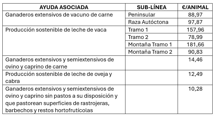 AYUDAS ASOCIADAS A LA GANADERIA 2025