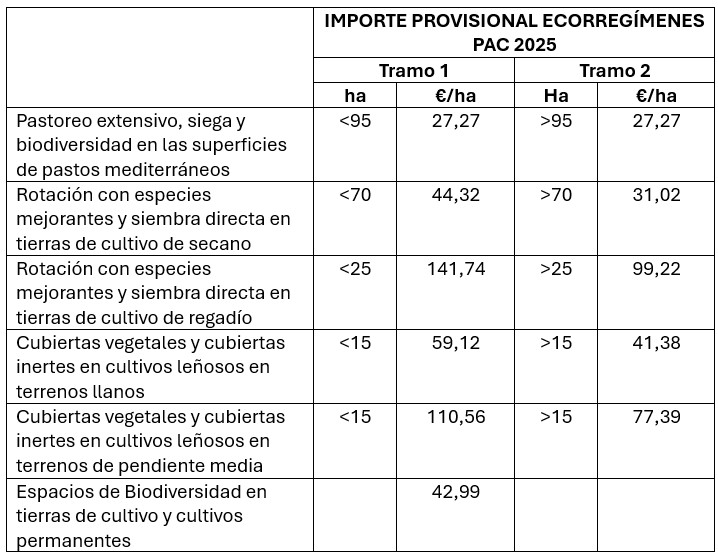 IMPORTES PROVISIONALES ECORREGÍMENES 2025