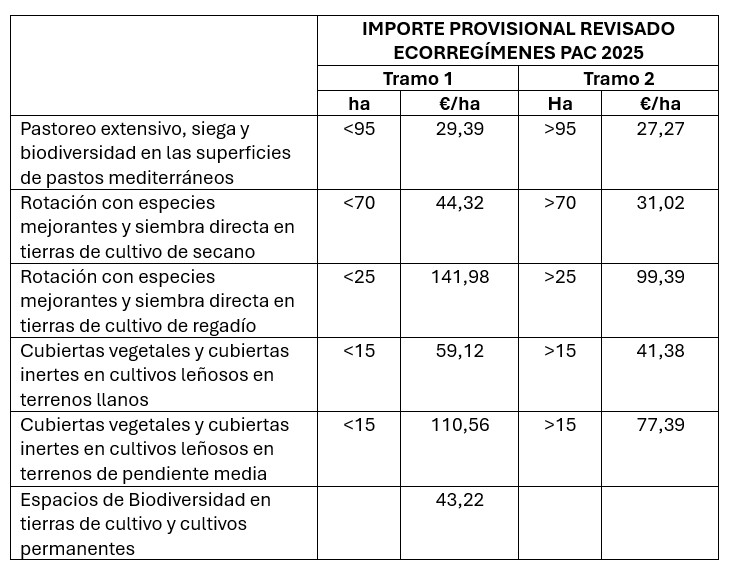 • Publicados los importes unitarios provisionales revisados de los Ecorregímenes de la PAC 2025